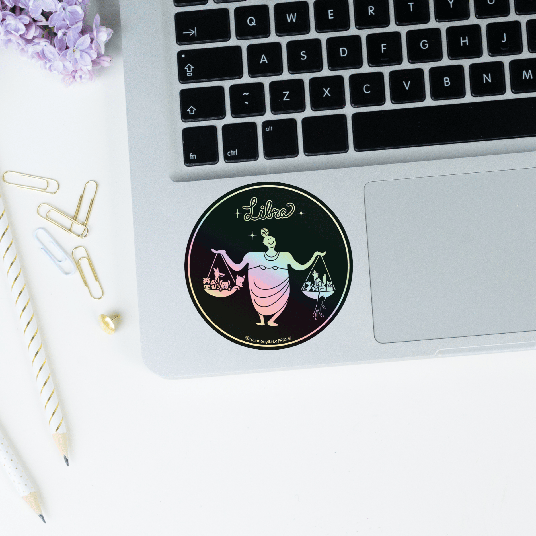 6 loose, individual, 3" x 3" die cut, holographic sticker