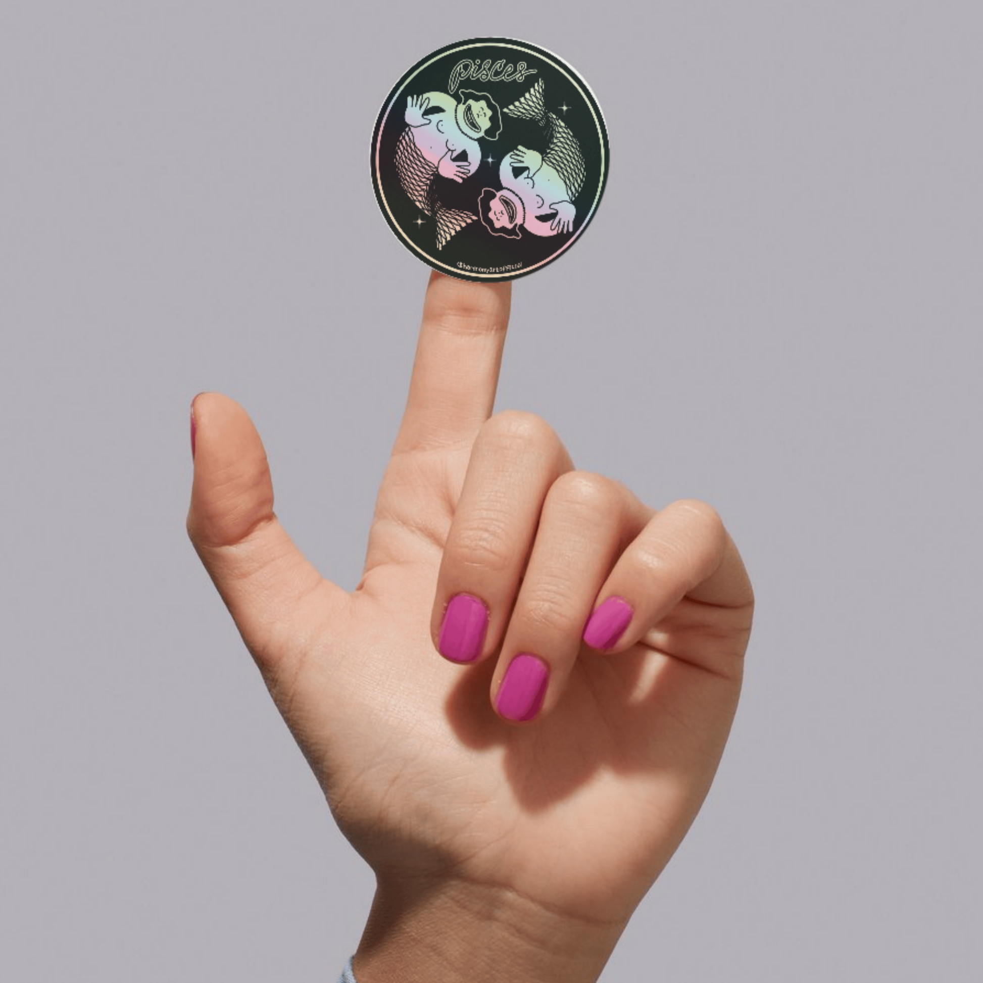 6 loose, individual, 3" x 3" die cut, holographic sticker